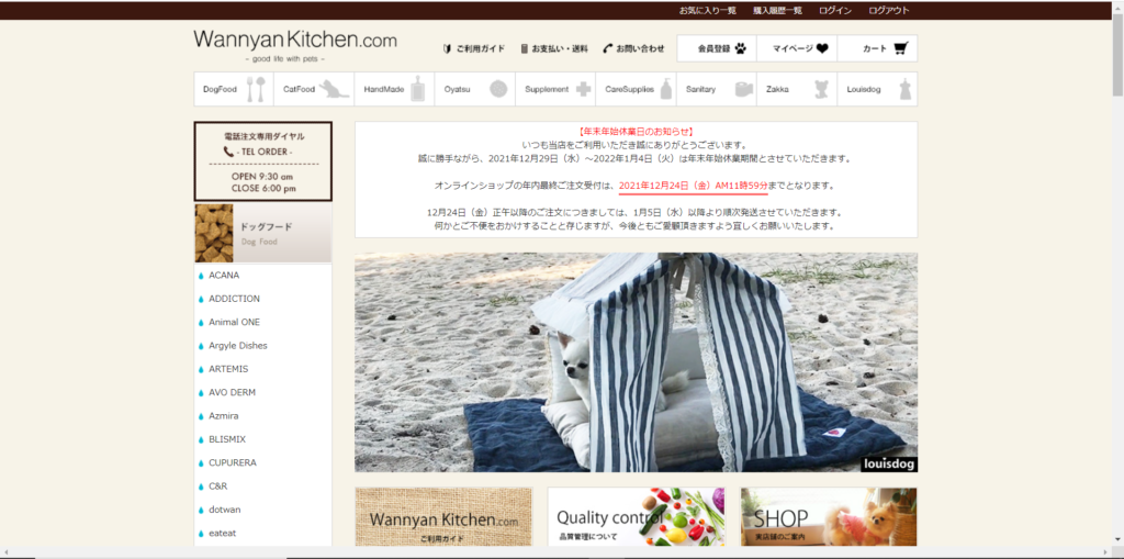 "Wannyan Kitchen" is an online shopping site selling domestic brands and organic dog food. We independently check the ingredients of the dog food we sell and publish information such as calorie counts, nutritional values, and whether or not it meets AAFCO standards.